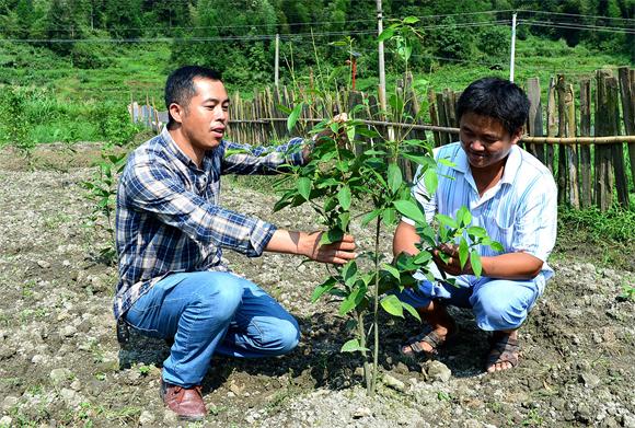 8月17日,隆回县小沙江镇农业综合服务站站长康永宏(左)在该镇黄湾村指导村民李荣兵对甜茶叶进行栽培管理。今年,该站通过县特色产业办引进甜茶叶苗木试种10多亩现在长势良好。甜茶叶具有清热解毒、防癌抗癌抗过敏、润肺化痰止咳、减肥降脂降压、降低血胆固醇、抑制和延缓血管硬化、防治冠心病和糖尿病等众多的保健功能。营养丰富又具有防治心血管疾病、预防中风、防癌作用、预防牙齿疾病等功效。目前甜茶叶市场销售前景广阔,售价不断攀升。甜茶树一般人工难以种植,该站首次在当地试种甜茶叶获得成功,为该镇进一步推广甜茶叶种植探索出一条致富新路。