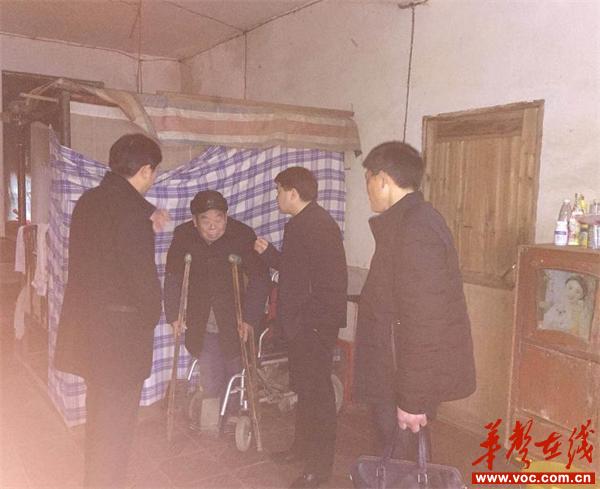 湖南日报·华声在线1月23日讯(通讯员 姚哲 陈文林)在新春佳节即将来临之际,新邵县酿溪镇2019年春节期间退伍军人和优抚对象走访慰问暨悬挂光荣牌拉工作开帷幕。1月18日,酿溪镇党委副书记龙田建带领镇民政办、社区干部对土桥社区5组带病回乡退伍军人曾德恍同志进行看望慰问,龙田建副书记详细询问曾德恍老同志的生活状况,了解日常生活中遇到的困难及所想、所需、所盼,讲解党和国家的好政策,感谢他及其家属对祖国、对人民、对部队所做的贡献,党和政府没有忘记他们这些曾经为国家做出贡献的退伍军人,并鼓励他安心生活,保重身体。龙田建副书记还为曾老房屋粘贴新春对联,悬挂光荣牌,送上慰问金、棉被、取暖炉等物品,随行人员在曾德恍老同志房前屋后进行了卫生大扫除。