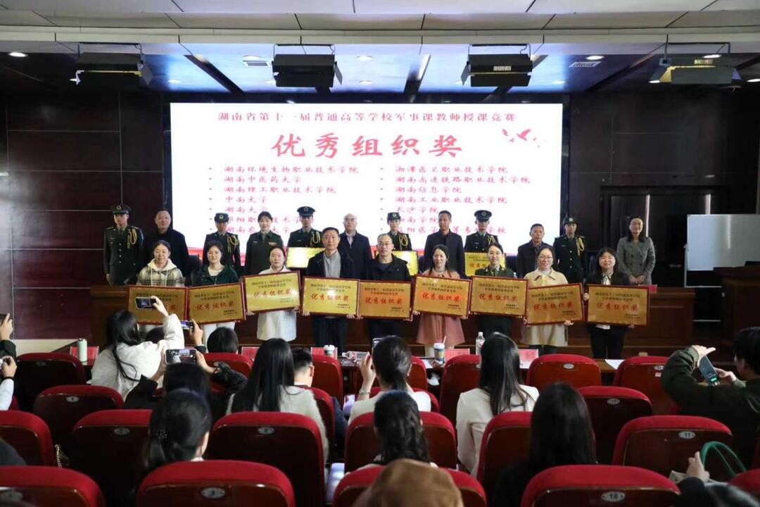 近日,湖南省第十一届军事理论课竞赛决赛在湖南环境生物职业技术学院圆满收官。邵阳职业技术学院艺术创意学院教师伍维凭借过硬的专业素养、创新的教学设计与精彩的现场表现,在全省百余所高校参赛选手的激烈角逐中脱颖而出,勇夺一等奖。学校因组织有力、备赛扎实,荣获“优秀组织奖”。