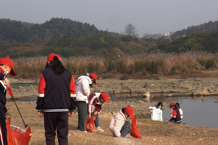 15时许,师生们转场至王家坪村孔雀滩开展实践活动。明确安全规范后,孩子们以四人一组为单位,手持垃圾夹子和垃圾袋,在划定区域内认真清理河堤沿岸的塑料瓶、包装袋等杂物。