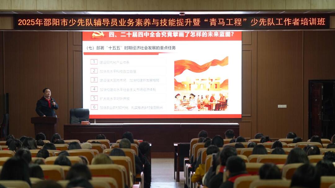 共青团邵阳市委副书记、市少工委常务副主任周小虎开展党的二十届四中全会精神宣讲,从会议核心要义和实践要求出发,结合少先队工作实际解读政策内涵,引导学员深刻把握新时代少先队工作的政治方向。