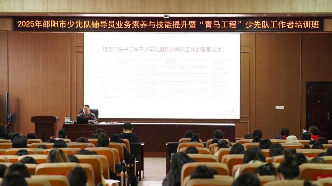12月6日至7日,由共青团邵阳市委、邵阳市教育局、邵阳市少工委联合主办的2025年邵阳市少先队辅导员业务素养与技能提升暨“青马工程”少先队工作者培训班在邵东市城区第二完全小学成功举办。来自全市各县市区团委分管少先队工作的副书记、少先队工作具体负责同志,各县市区少先队总辅导员、教育团工委书记,名师工作室主要成员、骨干辅导员、负责少先队工作人员及有意愿参加辅导员风采大赛的大、中队辅导员等共计220人参加培训。