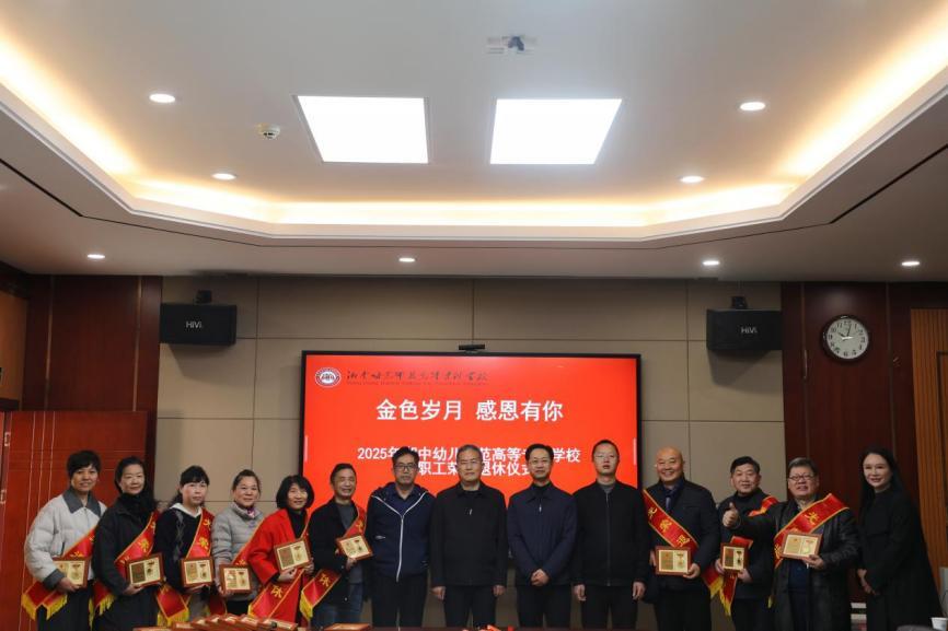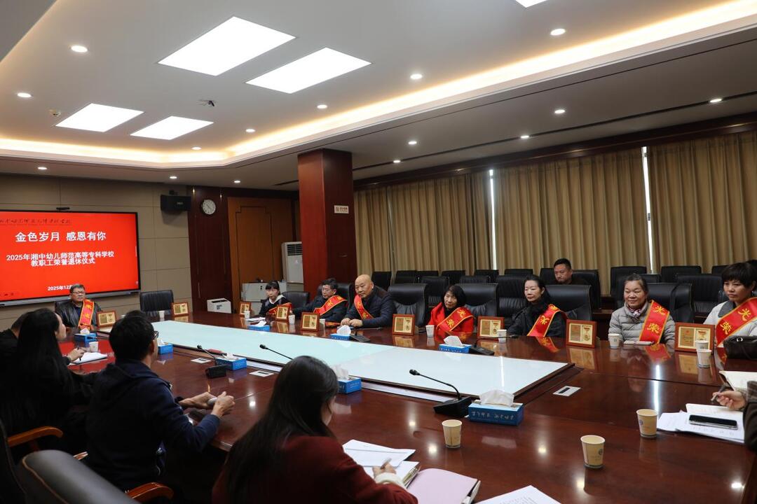 12月9日,湘中幼儿师范高等专科学校行政楼300会议室内暖意融融,学校在此隆重举行教职工荣誉退休仪式,以庄重仪式厚植尊师重教文化,向深耕教坛的退休园丁致敬,让教育情怀在代际传承中生生不息。学校党委书记夏宇宏,党委副书记、校长王玉林出席仪式,党委副书记陈湘清出席并讲话,党委委员、组织人事处处长刘兴斌主持会议。于林等退休教职工、青年教师代表共同见证这一温情时刻。